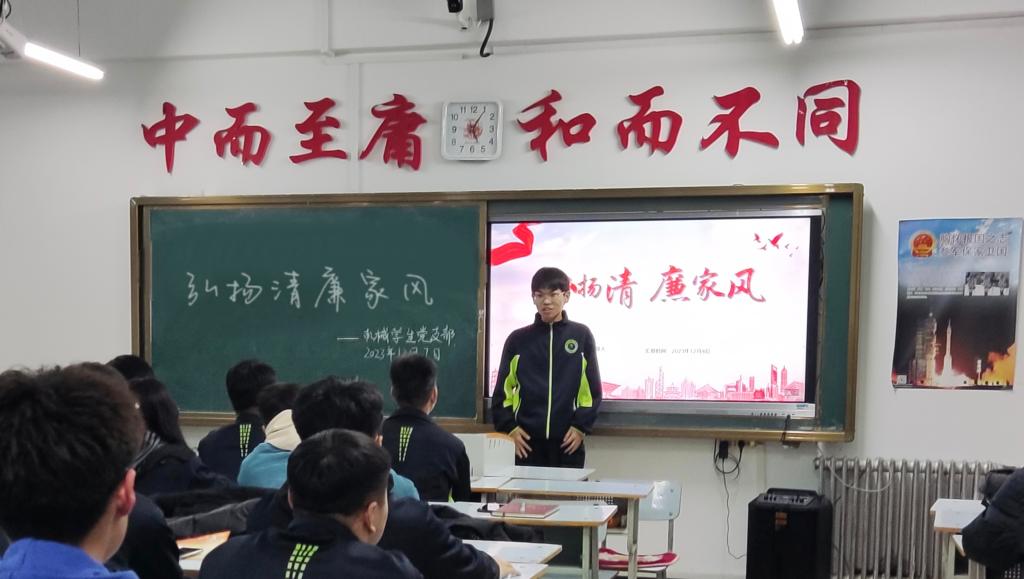 为进一步推进机械学生党支部廉政文化建设,弘扬清廉家风,增强党员的廉洁自律意识,机械学生党支部12月7日17时点在图书馆111开展“弘扬清廉家风”主题党日活动。会议由柳皓然主持,全体党员、积极分子参加。