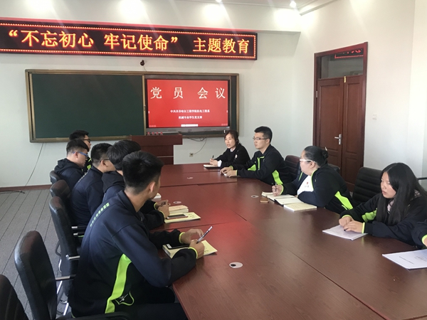 为深入学习习总书记关于高校思想政治工作方面重要论述和新中国成立70周年讲话精神,机械专业学生党支部书记王虹在图书馆608结合龙江“四大精神”组织学生党员开展“不忘初心,牢记使命”主题教育学习。党员报告个人学习体会,查找党员意识、担当、作为、服务师生员工遵守纪律、作用等方便差距和不足摆出问题,提出意见和建议。全体党员、预备党员参加了此次会议。