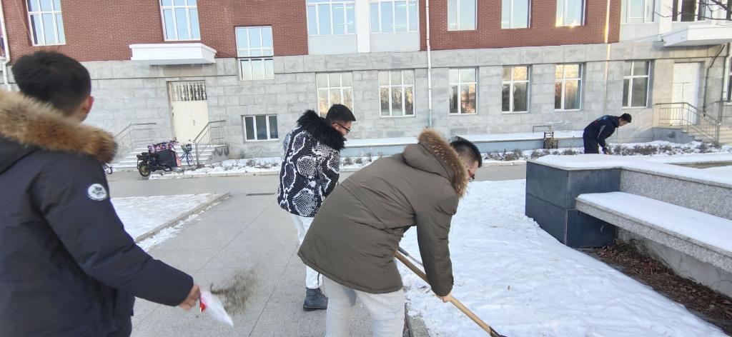 天气有些小风,也颇为寒冷,但再冷的寒风也阻挡不了机械学生党员的热情。清雪活动开始后,大家积极的投入到劳动中,学生党员们拿着铁锹来到了分配好的场地前,开始了整理活动。大家团结合作,以最快的速度将松雪整理平整。经过半个多小时的辛苦努力,整平了图书馆楼后西侧花坛里的雪,消除了积雪导致的安全隐患,为师生的安全出行提供了方便。劳动的过程虽然辛苦,但每个人都乐在其中,清雪队伍成为冬日校园一道亮丽的风景线。
