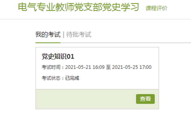 2021年5月21日下午电气专业教师党支部在学习通电气专业教师党支部党史学习中开展学习党史活动,活动内容为党史知识考试。