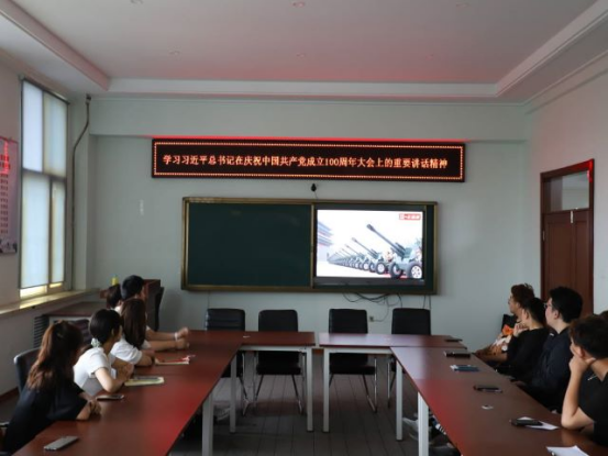 7月1日上午8时,全体师生共同观看庆祝中国共产党成立100 周年大会,在响亮的“没有共产党,就没有新中国……”的歌声下,历史的风,翻开了100年前的那一页。那一年,伟大的中国共产党诞生了!中国共产党照亮了中国走向繁荣富强的道路,中国的革命也从此有了方向。在观看后,机电系团总支组织了同学们进行讨论,同学们纷纷说出了自己的爱国情怀,爱国信念。其中刘鹏飞同学的讲话内容引起了同学们阵阵掌声:青年是国家的希望,是民族的未来。作为新青年的我们应该坚定爱国信念,继承和弘扬党的光荣传统和优良作风。岁月峥嵘,我们不忘初心,砥砺前行!