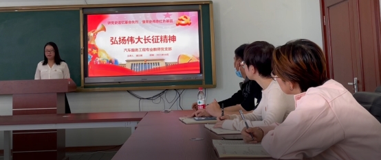 讲党史追忆革命先烈,懂党史传承红色基因,10月25日,汽车服务工程专业教师党支部开展了主题党日活动。党支部书记浦兰娟以“弘扬伟大长征精神——纪念红军长征胜利85周年”为题,带领全体党员学习了什么是长征精神、怎样理解长征精神、怎样走我们的长征路。集体学习后,支部组织党员开展了为师生办实事志愿服务活动,切实将党史学习教育“内化于心、外化于行”。