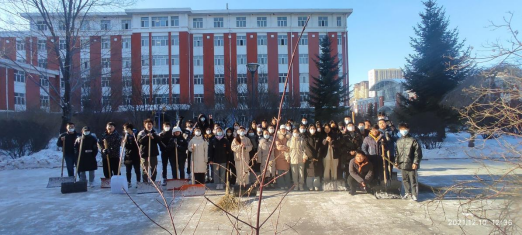 扫雪现场,虽然气温较低、寒风阵阵,但并没有阻挡志愿者们扫雪除冰的热情,大家三人一群、两人一伙,干的热火朝天。铁锹与地面撞击声不绝于耳,其间又混杂着扫帚扫雪时沙沙的声音,忙碌的身影构成了一道亮丽的风景线。在扫雪过程中同学们发扬了吃苦耐劳、顽强拼搏的精神,大家团结协作,顶着寒风,将积雪全部清扫干净。同学们干劲十足的身影感染了每一个路过的人,大家纷纷向扫雪的同学们投去了赞许的目光。经过几个小时的奋战,扫雪任务圆满完成,虽然室外气温依然很低,但是同学们劳动的热情和团结的力量让这个冬日变得格外温暖。