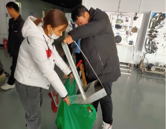 活动由培训班班长郭兴宇主持开展,在活动开始阶段,全体成员起立共唱歌曲“没有共产党就没有新中国”,从歌曲中让大家体会到中国共产党开辟道路的艰辛和为新中国做出的贡献。随后大家轮流对本次研讨的主题发表学习感悟。郭兴宇说:践行初心和使命是激励中国共产党人前赴后继、英勇奋斗的根本动力。回顾党史和新中国史,我们可以看到,中国实现了从站起来到富起来再到强起来的伟大飞跃,是一代代中国共产党人接续奋斗的结果。沃芳说:回顾学校30年的办学历史,学校始终与国家的对外开放事业休戚与共,我们要进一步传承和发展好30年来百折不挠的奋斗精神、居安思危的忧患意识、特色发展的创新精神和兴校荣校的责任担当,切实担负起为党育人、为国育才的神圣使命。在活动的最后,郭兴宇班长组织成员进行志愿活动,对实验室进行了清理打扫。