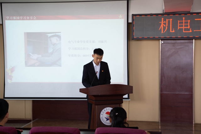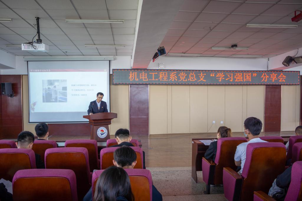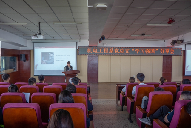 为提高机电系党员使用“学习强国”平台的积极性,推进习近平新时代中国特色社会主义思想的学习,机电系党总支5月31日在图书馆501召开“学习强国”学习分享会,会议由机械183郭旭主持,机电系全体党员80人参加会议。