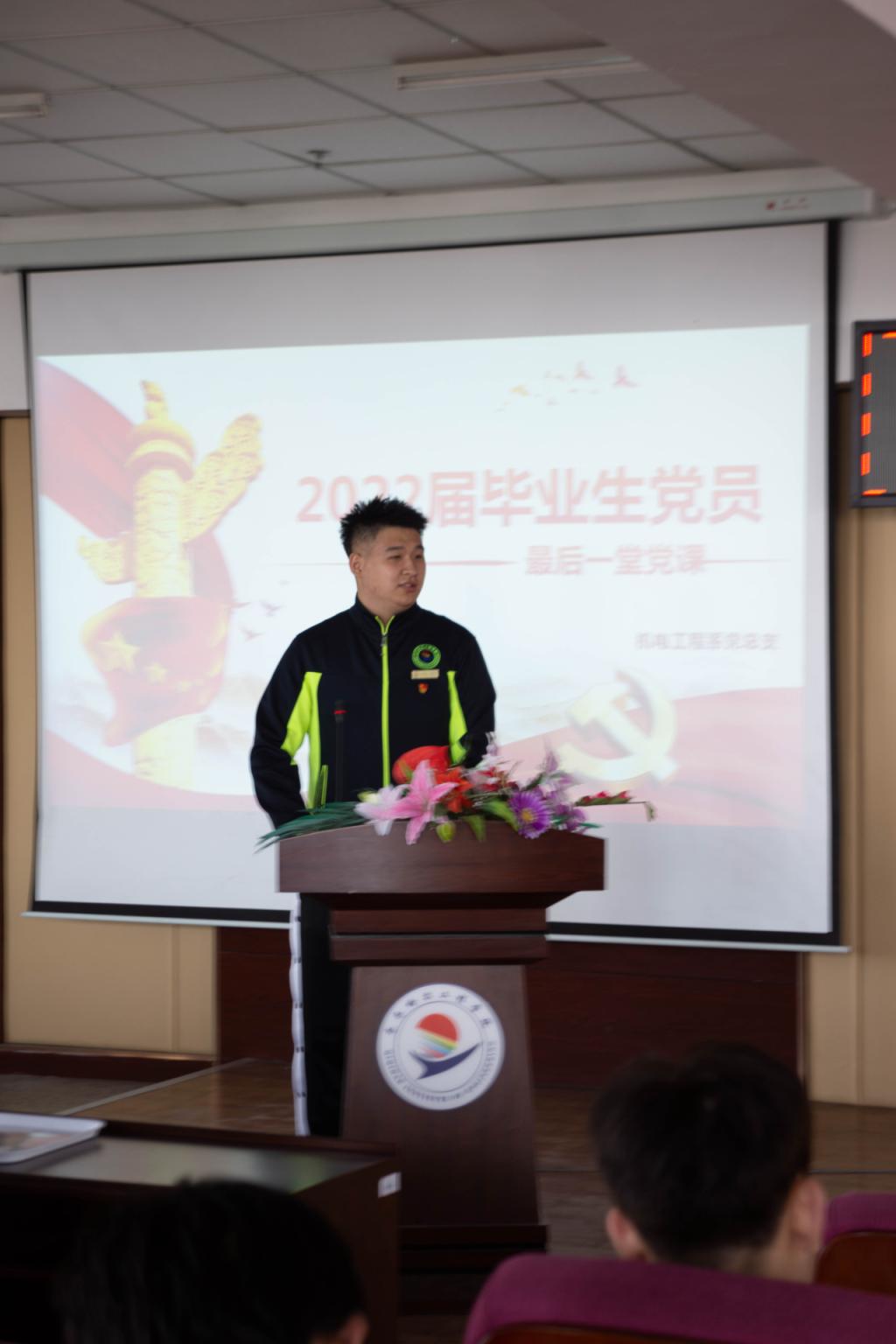 第二项,王书记以《端正入党动机,做合格党员》为题,为毕业生党员上了离校前的最后一堂党课。王书记强调,“守纪律,讲规矩,作表率”是对党员、干部对党忠诚度的重要检验,也是每位党员需要铭记于心的九个字。