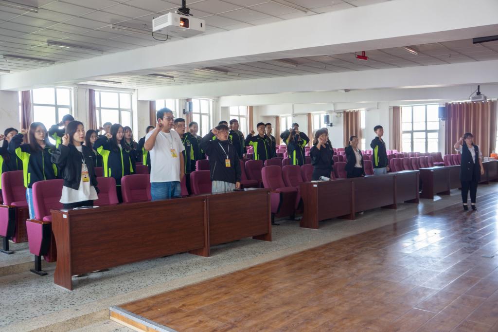党总支宣传委员刘微带领所有毕业生党员重温入党誓词,面对党旗庄严宣誓。