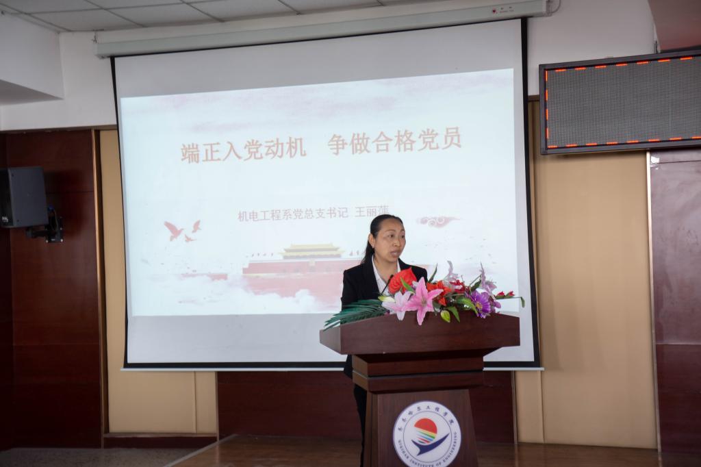 6月1日机电系党总支在图书馆501会议室开展以“端正入党动机,做合格党员”为主题的2022届毕业生党员“最后一堂党课”主题教育活动,本次活动是机电系毕业生文明离校工作的一项重要环节。党总支书记王丽萍为毕业生党员上在校期间的“最后一堂党课”,与毕业生党员重温入党誓词,激励毕业生党员牢记使命,不忘初心,带着母校美好的祝愿踏上人生新的征程,用热情和学识谱写青春绚丽篇章。