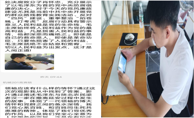 此次活动形式为自主观看感悟分享和座谈会交流,作为机械学生党支部深化党员和积极分子的思想政治引领的重要载体,着力提升党员的获得感、成就感和参与感,全面提升党员思想道德水平,努力营造昂扬向上、团结奋进的浓厚氛围,激励着机械学生党支部的党员不懈奋斗,砥砺前行。