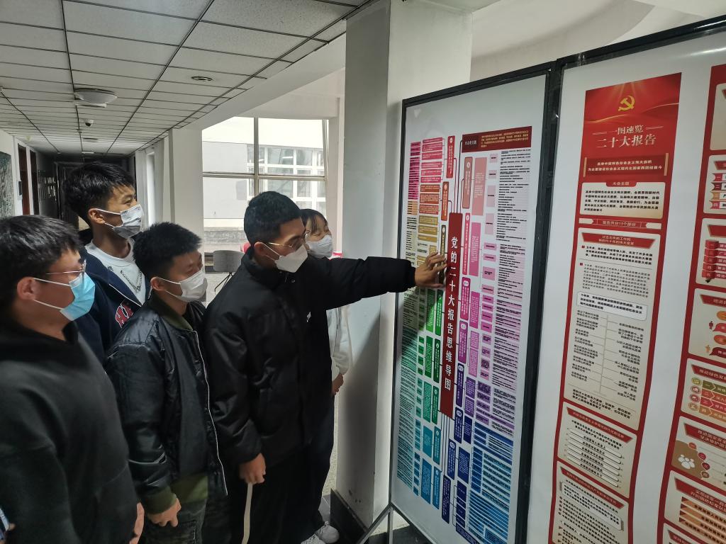 准确把握精神实质,深刻领悟丰富内涵。机电工程系党总支组织采取宣传板报、宣传展板、制作党的二十大思维导图、印发党的二十大知识卡片、集中学习、各自学习、讨论交流等方式,广泛开展主题宣传活动,多形式学习贯彻党的二十大精神。