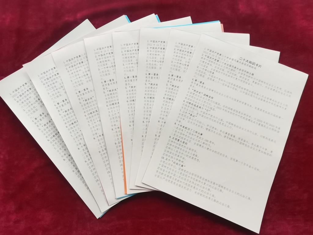 通过印发党的二十大知识卡片,各位党员可以随时随地学习党的二十大报告,深度领略党的二十大精神,深刻学习党的二十大重要理论思想。
