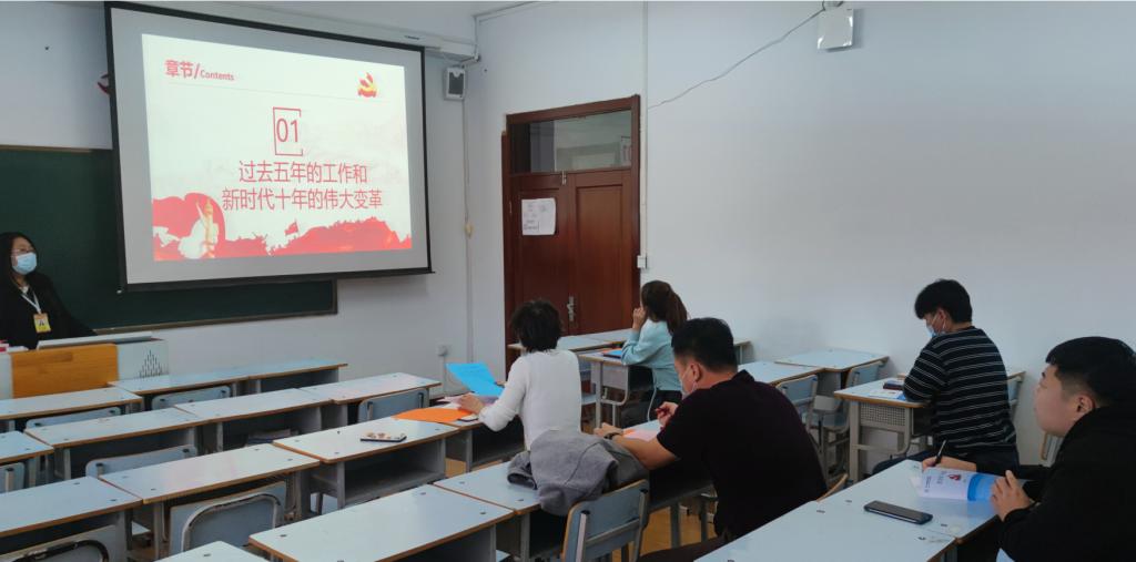 10月26日下午15:30,车辆工程专业教师党支部书记宋华老师在图614组织支部全体党员学习二十大报告内容。