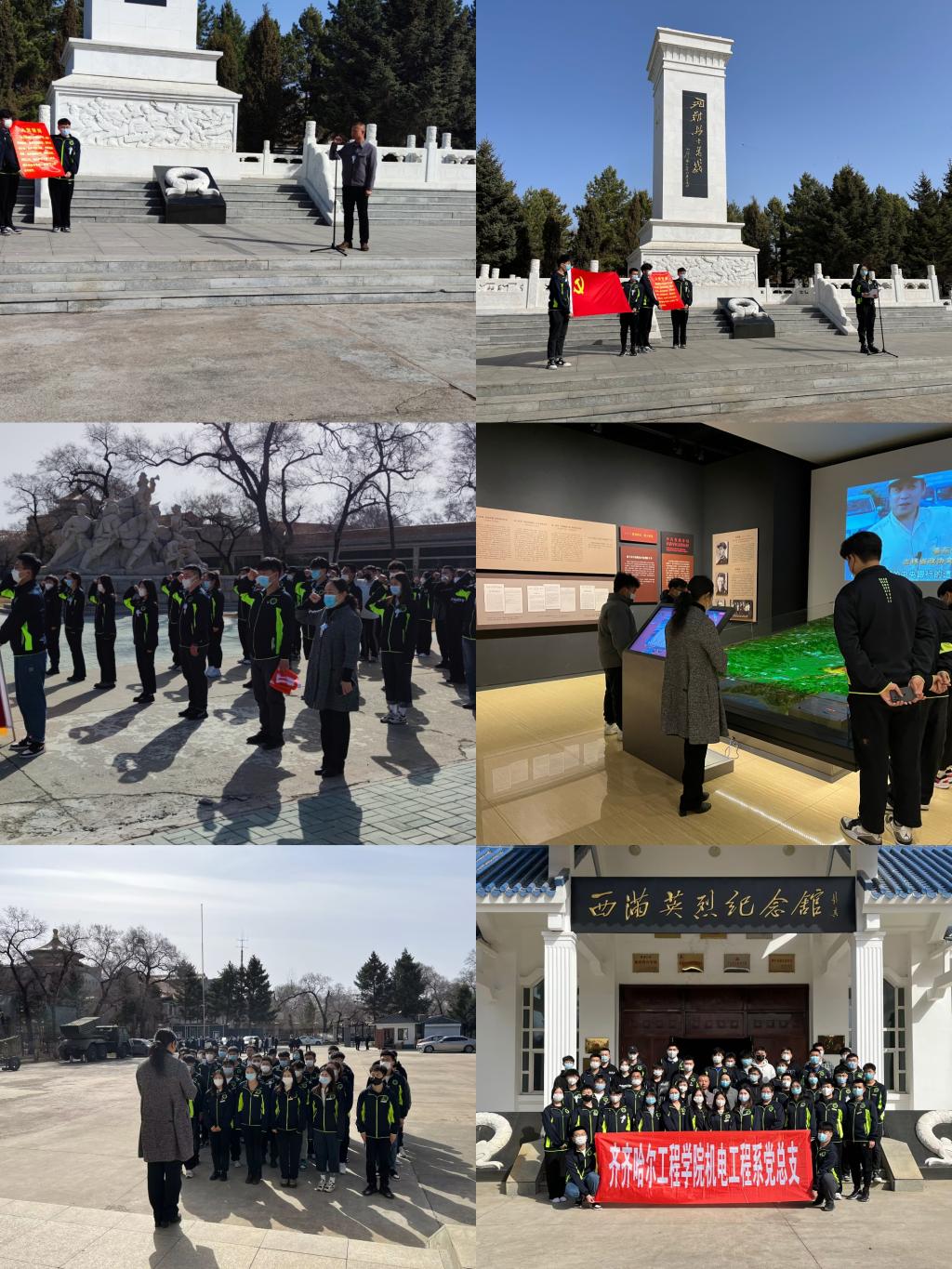缕缕春风,绵绵细雨,诉不尽对革命烈士的无限深情,道不尽对烈士英魂的无限哀思,在清明节来临之际,机电系党总支于4月2日早上8点半前往西满革命烈士陵园瞻仰和缅怀革命烈士。党总支特邀党总支书记王丽萍老师、郝岩利老师、王洪春老师、吕嵩岩老师,党员、预备党员、积极分子代表等40多人共同参加了活动。