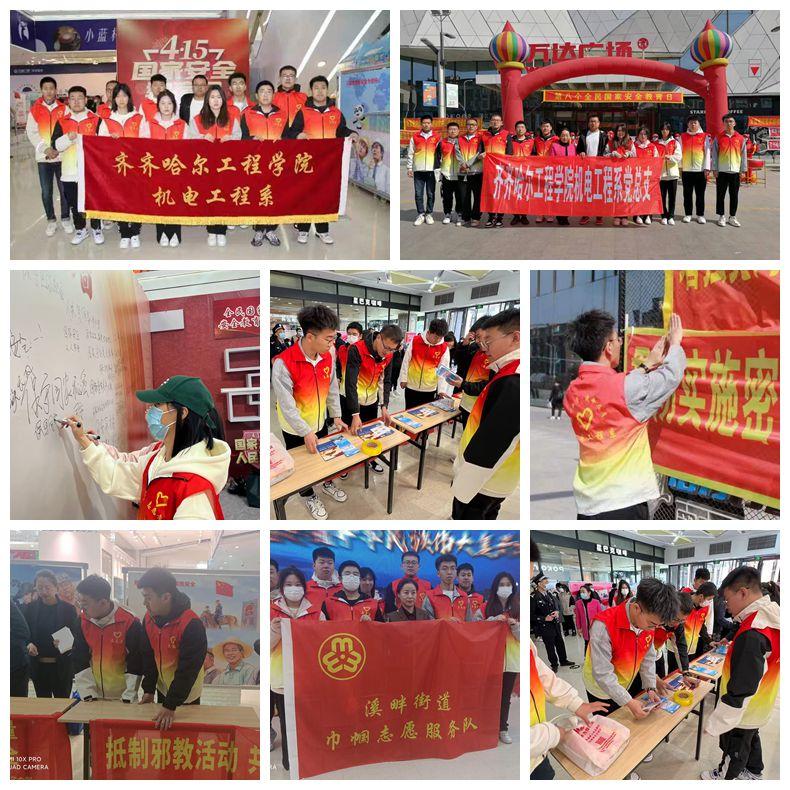 2023年4月15日是第八个“国家安全教育日,为了更好的引导学生们和社区居民学习国家安全观,树立安全意识、掌握安全知识,坚决维护国家安全。机电工程系在党总支书记、学生工作副主任王丽萍及团总支书记于海龙的带领下开展了“国家安全教育日”志愿服务活动。此次志愿服务队由学生党员和团总支骨干组成。
