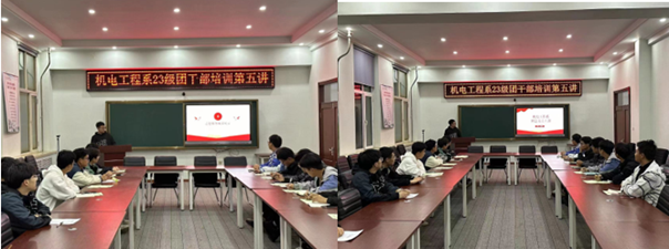 培训中,机电工程系团总支青工部部长张永鸫讲“学生应怎样去做志愿服务,管理好班级于学校卫生,与其他部门协作举办好活动”。我们积极参与团总支的各项工作。我们与其他部门紧密合作,协助团总支开展各类活动,如团日活动、主题讲座、志愿服务等,切实满足广大青年学生的需求,促进学生思想政治教育和全面发展。