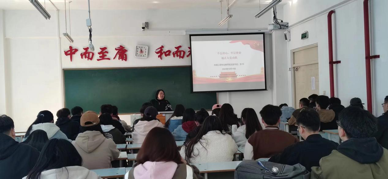 机电工程系车辆专业教师党支部书记宋华和学生党支部书记贾文静两位老师“以创新闯出改革开放新天地”为主题指出在新时代,“创新”是发展第一要义并强调学习基本理论是加入中国共产党的第一步,也是必需的一步,要牢记党的性质和宗旨,端正入党动机,增强党性修养,争取早日成为一名真正的共产党员。
