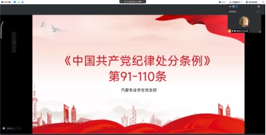 7 月 10 日,汽服专业学生党支部通过线上方式学习了《中国共产党纪律处分条例》第 91 条至第 110 条。