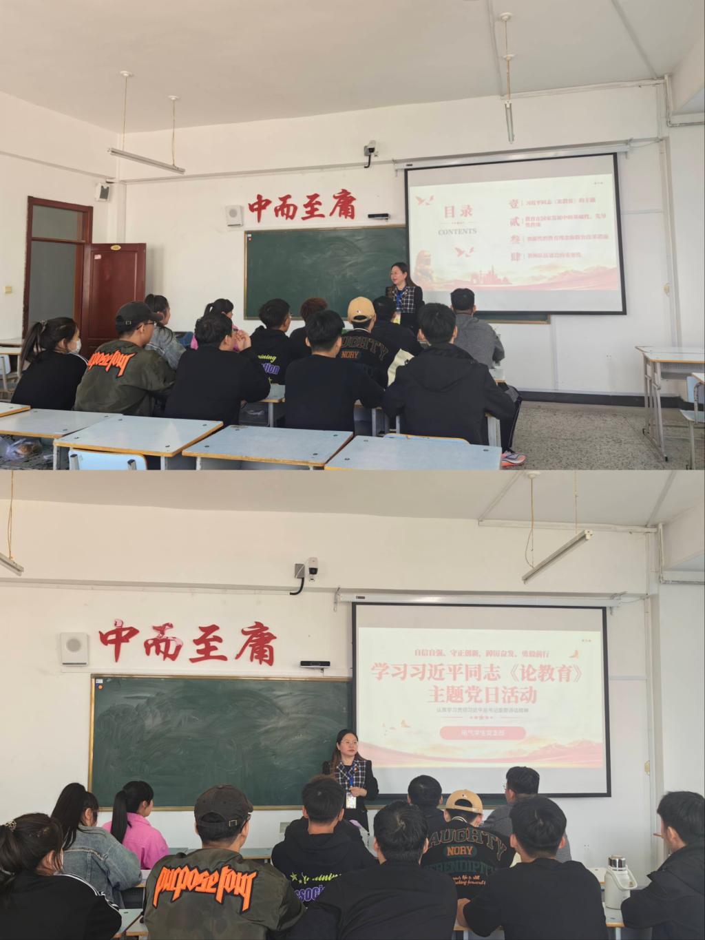 电气专业学生党支部于9月27日由支部书记汝晓艳带领全体党员学习开展学习习近平同志《论教育》主题党日活动。习近平同志指出,教育是民族振兴,社会进步的重要基石。支部书记汝晓艳对关于如何更好的推动教育事业的发展,培养党员同志德智体美劳全面发展成为社会主义的建设者和接班人。