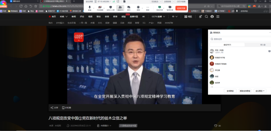 5 月 14 日下午,车辆教师党支部在线上腾讯会议开展学习《八项规定改变中国》活动,支部书记宋华主持,全体党员参与,旨在强化纪律意识,提升作风建设水平。