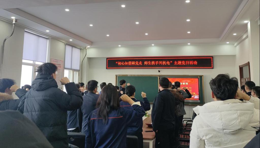 活动开篇,机电学院党委组织员吕嵩岩同志带领全体党员,面向党旗庄严宣誓。党员们列队整齐,右手握拳高举,神情庄重肃穆,铮铮誓言铿锵有力。在重温入党誓词的庄严时刻,全体党员回溯入党初心,进一步坚定了对党忠诚的政治品格,以及为党和人民的事业矢志不渝、接续奋斗的坚定信念。