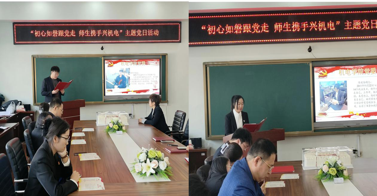 作为教师党员,郭兴宇结合自身的学科科研经历谈到,他会牢牢把握成长机遇,在学思践悟中锤炼本领,紧跟时代步伐创新突破,用脚踏实地的科研实践兑现入党时的庄严承诺。陈迎春则回望多年育人之路,她表示将始终坚守立德树人的初心,以更严苛的标准砥砺自身,把“政治生日”赋予的这份责任,化作深耕思政一线、护航学生成长的不竭动力,以热忱与实干为机电行业培育栋梁之材。