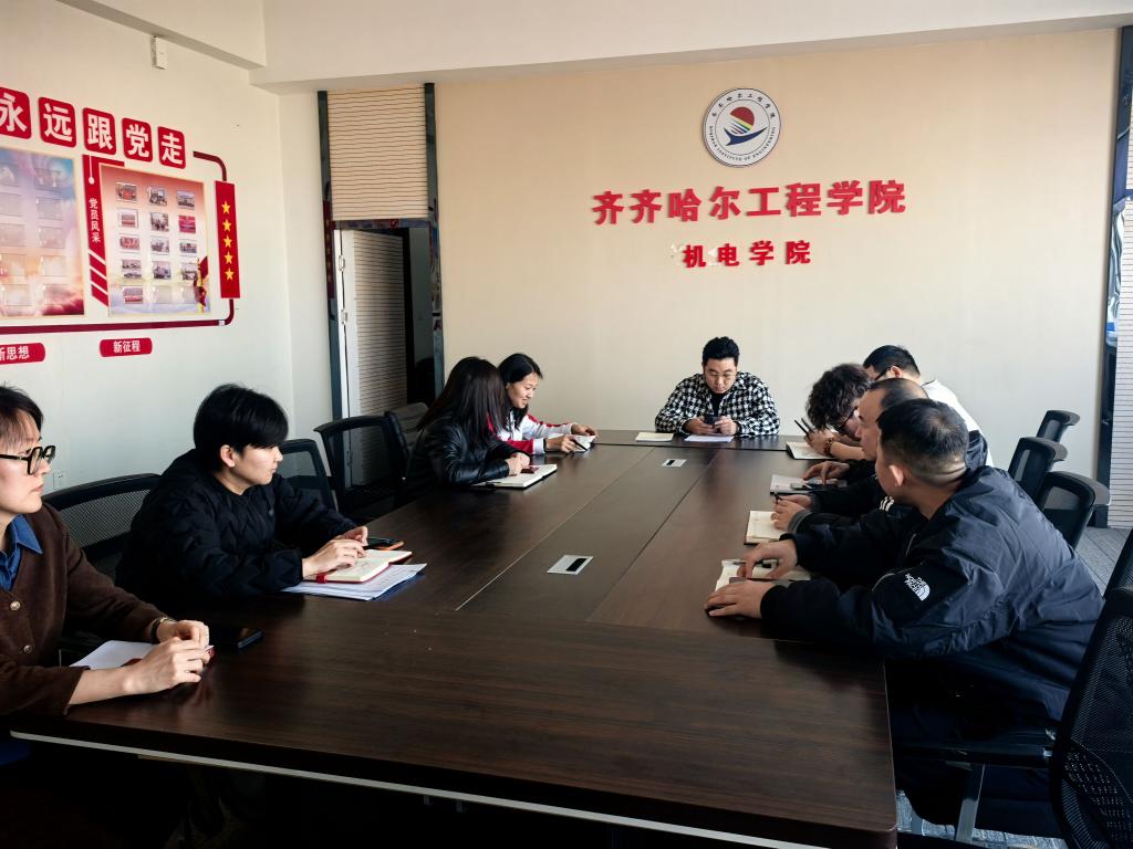 会议深学细悟习近平总书记关于树立和践行正确政绩观的重要论述,传达落实学校党委有关部署要求,明确机电学院学习目标与要求。会议强调,要引导机电学院全体党员干部以学铸魂、以学增智、以学正风、以学促干,切实把学习成果转化为推动学院高质量发展、提升学科建设水平与人才培养质量的实际成效。
