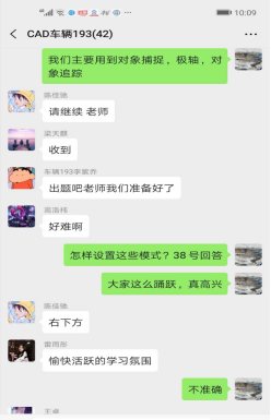 同时,李秋玲老师还通过作业情况,掌握学生的学习质量,进而随时调整教学设计,提高课堂质量。第一次课前她就给学生下发了CAD命令表,要求学生背。还下发了一个思考题:根据职业前瞻答辩时学生对CAD的了解,上课时介绍一下CAD在自己职业生涯中的作用。