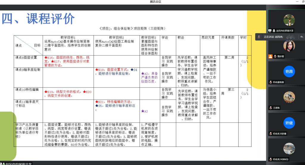2月19日下午,机电系开展了新学期教师线上集中说课活动,机电工程系主任郭磊、教学副主任甄彩霞、各专业负责人和所有教师参加了此次说课活动。