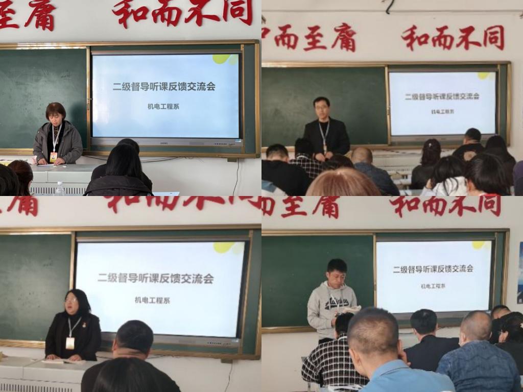 4月12日下午,机电系在图书馆429教室由教学副主任甄彩霞主持召开二级教学督导交流反馈会,就近期二级督导听课情况进行反馈,机电系全体教工参加。