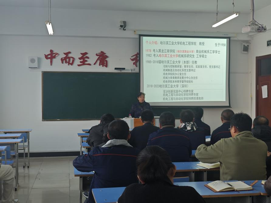 讲座伊始,机电系敖林喆副主任详细介绍了王娜君教授。王娜君教授曾在哈尔滨工业大学身兼数职,担任切削与控制教研室教学主任、实验室主任以及党支部书记等重要岗位职务,在教学与科研领域都沉淀了极为丰富的经验,成果斐然。例如,其主导的“强化工程创新能力培养的机械专业实践教学建设”项目荣获 2014 年国家教育部教学成果二等奖,这一殊荣便是对她卓越能力的有力见证。