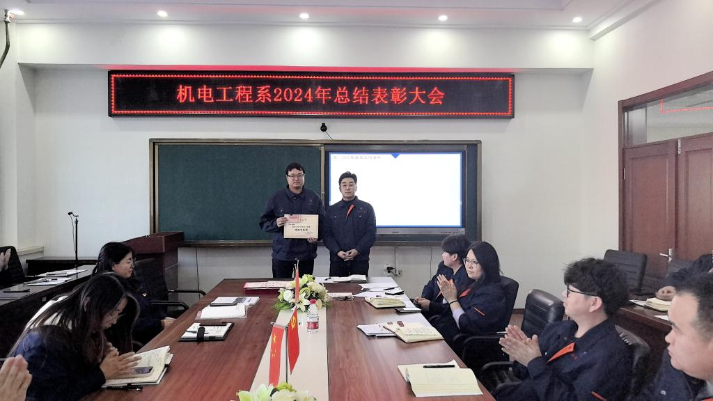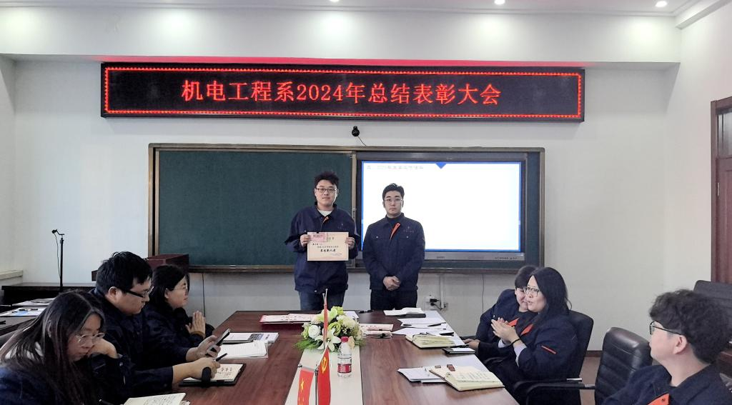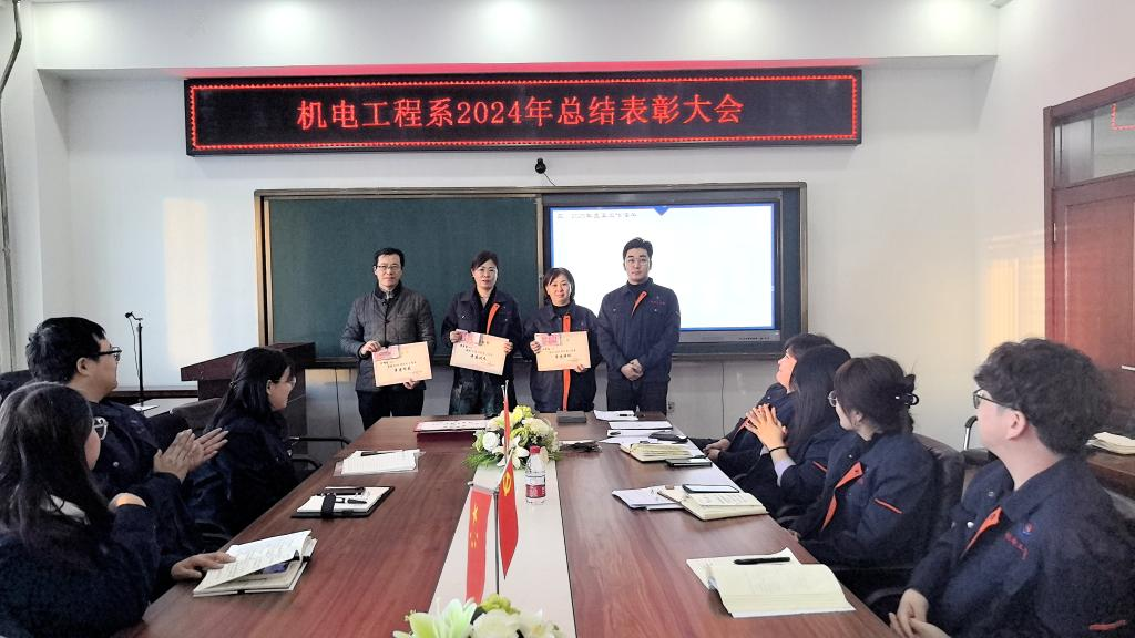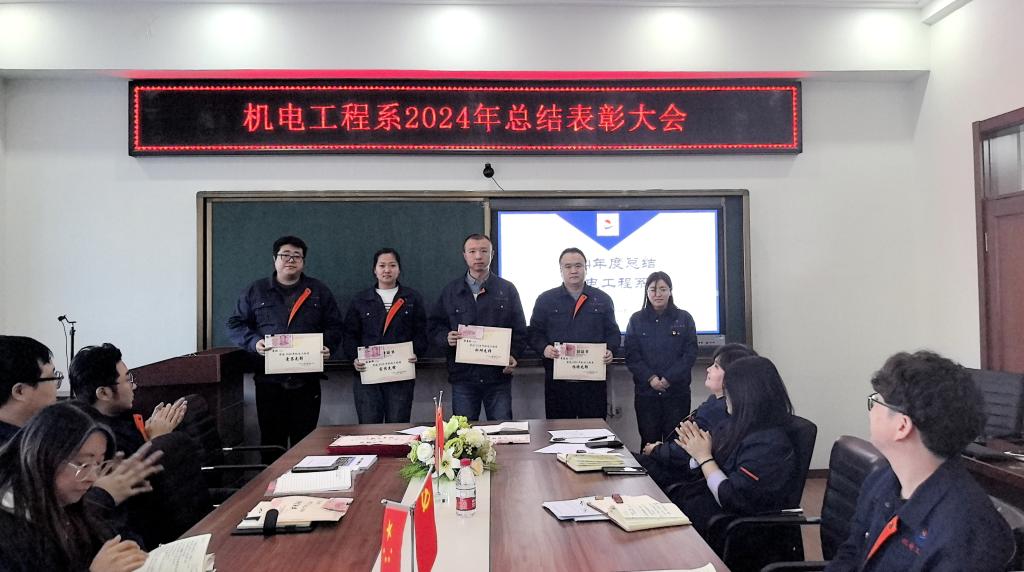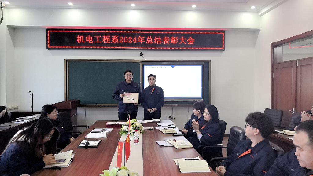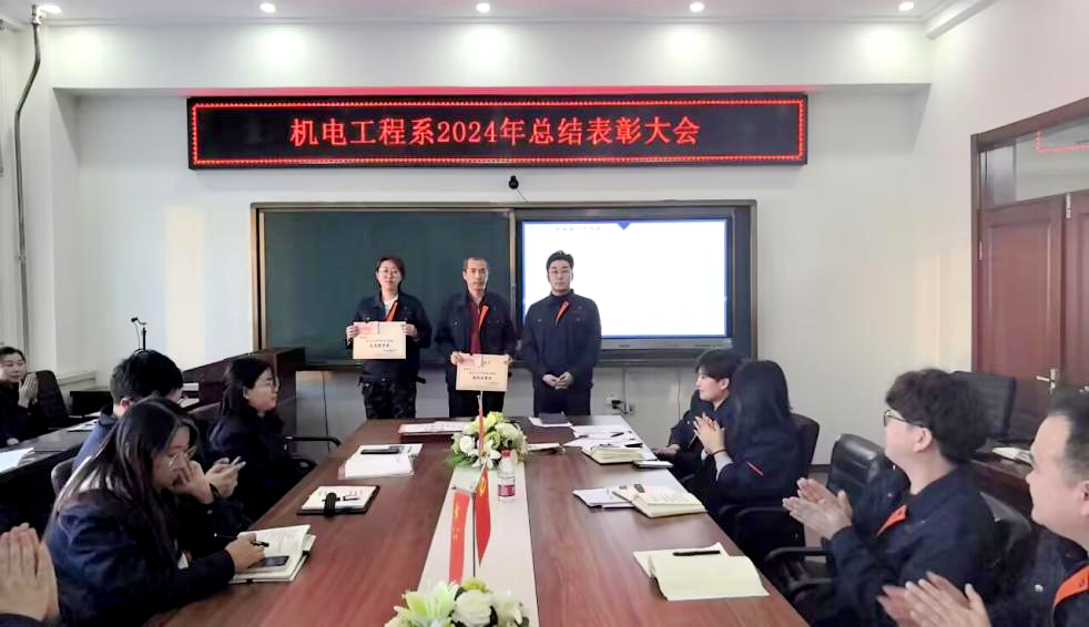 1月14日下午,机电工程系年度表彰总结大会在图书馆608会议室举行。系领导、教职工齐聚一堂,共同回顾过去一年机电工程系在教学、科研、学生工作等方面取得的优异成绩,表彰在各项工作中表现突出的教职工,展望机电工程系发展的新蓝图。