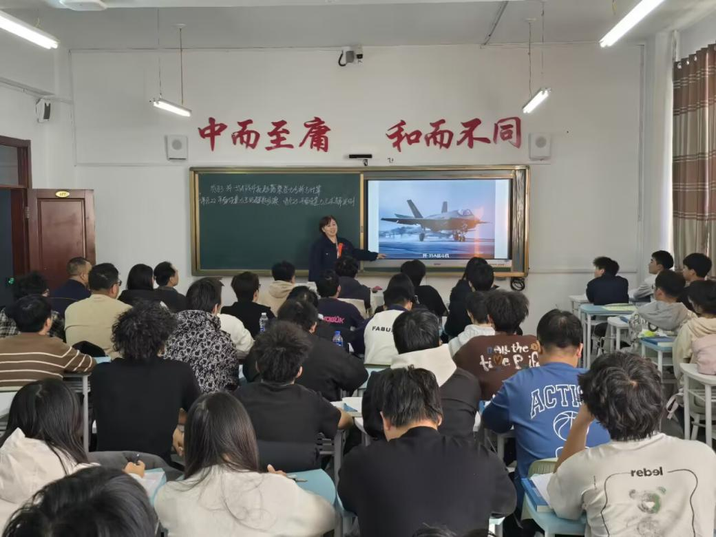 课上,杨老师引入“歼-35A战斗机起落架受力分析与计算”为项目,将抽象理论与国家航空装备结合,让学生直观感受理论力学知识的实际价值。教学中,她既细致引导学生完成起落架受力分析、约束力计算等专业内容,巩固理论知识点;又融入思政元素,介绍歼-35A研发背景,讲述科研工作者攻坚克难的故事,激发学生民族自豪感与使命感。同时,结合起落架设计对安全、可靠性的要求,强调工程人员需坚守严谨态度,树立正确的工程伦理观。