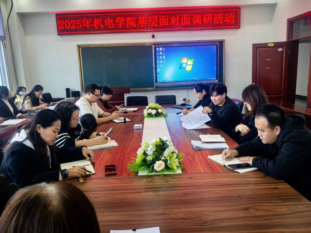 为贯彻落实党的二十大精神,执行年初学校职工代表大会部署,强化教职工民主意识,保障合法权益。10月28日下午,根据学校工会《关于开展2025年深入基层面对面调研活动的通知》部署,学生工作处处长王丽萍代表校工会深入机电学院开展“与教工面对面,让服务心贴心”专题调研活动。