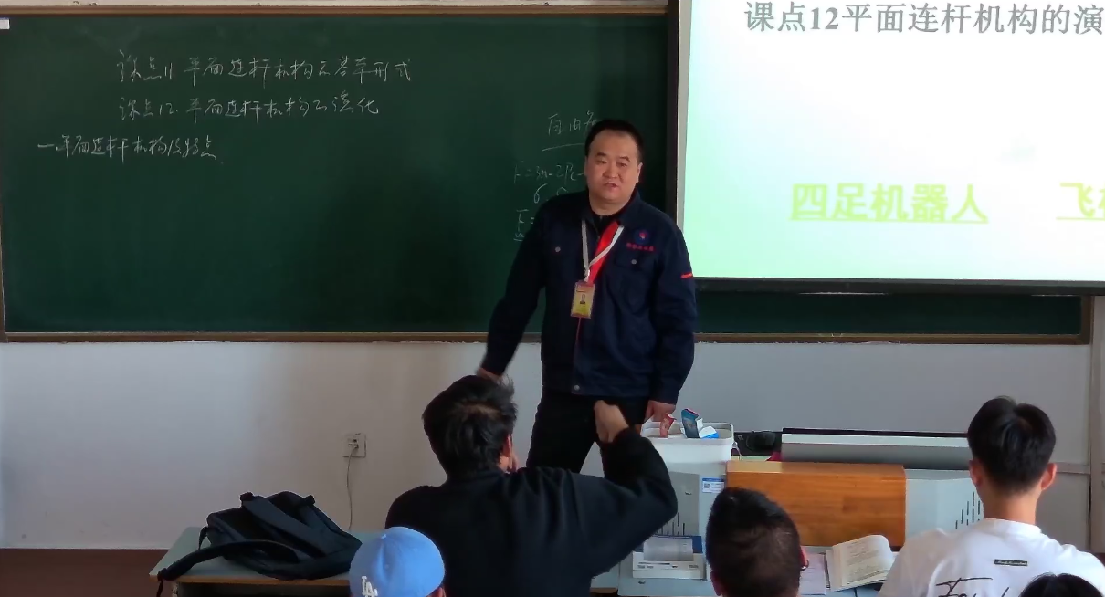 课堂伊始,李春波老师通过动态模型演示,向学生清晰呈现了平面连杆机构中曲柄摇杆机构、双曲柄机构、双摇杆机构这三种基本形式。他着重强调,这三种基本形式虽结构组成存在差异——曲柄摇杆机构有且仅有一个曲柄能做整周转动,双曲柄机构的两个连架杆均为曲柄,双摇杆机构则两连架杆均为摇杆,但它们的核心本质是一致的,都是通过构件间的铰链连接,将主动件的运动传递给从动件,实现运动形式的转换,而不同形式的划分,是基于构件长度比例这一关键参数的差异。在讲解专业知识的过程中,李春波老师顺势延伸思政内涵。他指出:“平面连杆机构的不同基本形式,就如同工程实践中面对不同需求的解决方案,虽外在表现不同,但核心都是遵循机构运动的基本原理。这启示我们,在今后的工程设计与研发中,既要根据实际需求灵活选择合适的形式,又要牢牢把握‘原理本质’,不能脱离根本规律盲目创新。”随后,他以我国高端装备制造领域的发展为例,讲述科研团队在设计机械臂、精密传动系统时,以平面连杆机构等基础机构原理为根基,结合实际工况不断优化结构形式,最终突破国外技术壁垒,实现关键设备国产化的故事,让学生深刻体会到“立足基础、灵活创新”的重要性,以及科研工作者的责任与担当。