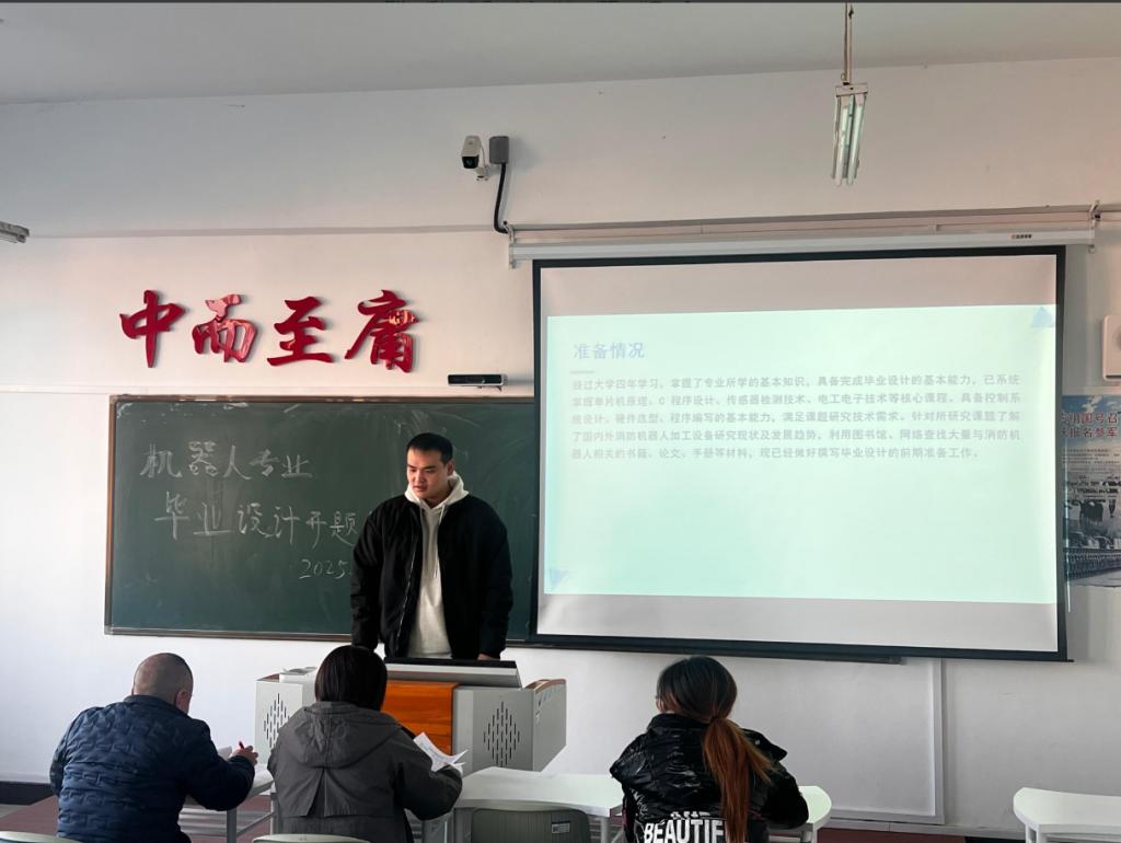 答辩中,学生围绕“机器人控制系统设计”“服务机器人路径规划”等课题,从研究背景、方法设计到预期成果展开汇报,部分选题源自企业实际生产痛点。杨翠丽老师结合目前机器人行业发展以及专业理论,针对此次答辩进行专业性指导,形成理论联系实际的指导模式。