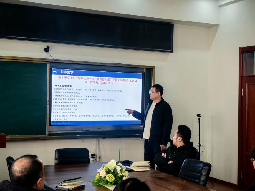 3月17日,为全面落实学校招生宣传工作要求,全方位展现学院办学特色与育人成果,机电学院依据《齐齐哈尔工程学院(新媒体)招生宣传工作指南》文件精神,召开三月新媒体宣传工作部署会,会议由机电学院院长敖林喆主持、全体教职工参会,会议确立宣传任务、规范创作标准、细化考核要求,推动学院新媒体宣传工作提质增效。