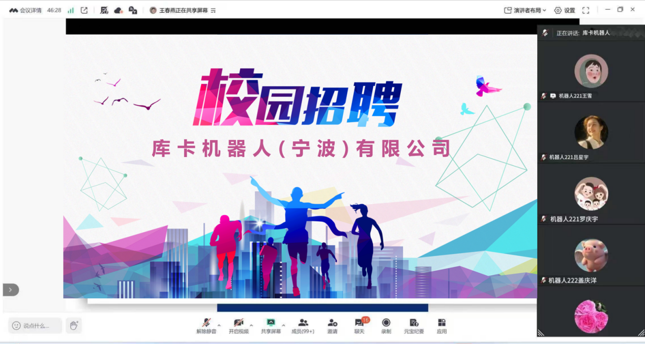学生们全程参与库卡机器人(宁波)有限公司的线上宣讲会,内心满是收获与期许,也更加坚定了自己深耕智能制造领域的职业方向。这场腾讯会议形式的宣讲会,让学生们真切感受到了全球工业机器人领军企业的实力与温度,也对即将开启的职场征程有了更清晰的认知。