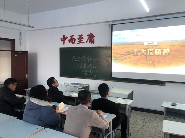 机械教师党支部11月28日按照学习“不忘初心、牢记使命”日程安排,召开了学习龙江精神--北大荒精神主题学习会议,5名教师党员共同观看学习了北大荒精神纪录片。
