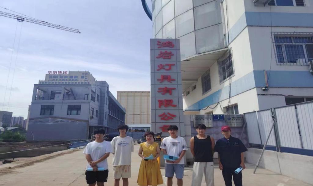 7月26日上午,专业实践指导老师吕嵩岩来到鸿岩灯具有限公司检查实习,张恒通,崔俊博,孙跃洋,卢