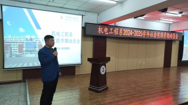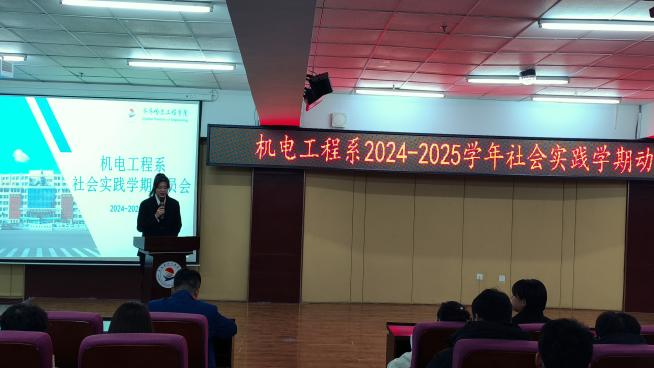 大会第一项,由王虹老师为我们介绍《机电工程系2024-2025学年度社会实践学期实施方案》。通过王虹老师的介绍让我们认识到了社会实践不仅能增强学生的实践能力,还能让学生更好地理解社会,服务社会,为将来的职业生涯打下基础。