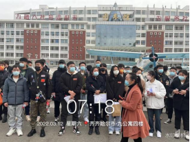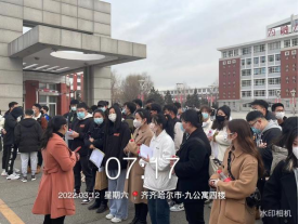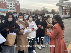 3月12日早7点,机电工程系学工副主任王丽萍带领机电系辅导员及九公寓社区干部为报考教师资格证的学生送行。