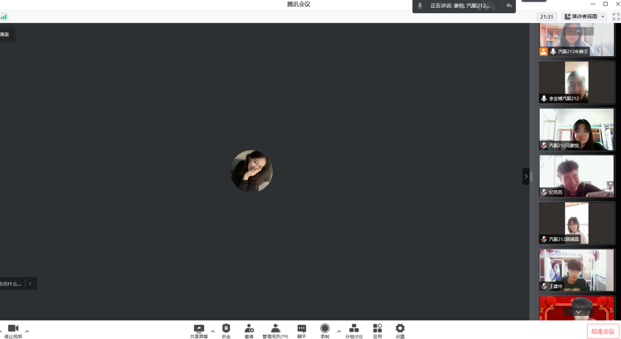 因为我们进入了静态化管理,所以我们这周的团课在线上演讲。由汽服212班团支书牟静文为主讲人,