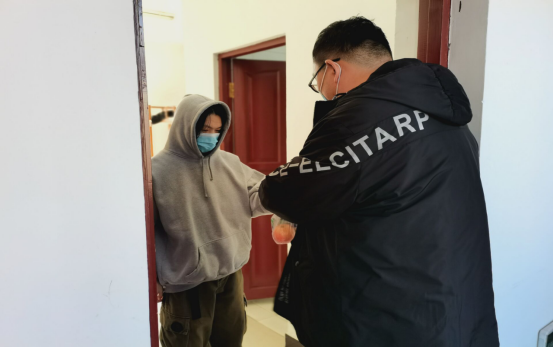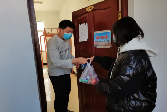 3月17日,机电系辅导员白士元、王虹,前往学校五公寓防疫隔离室看望慰问返校隔离留观的学生。