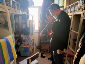 3月29日,机电系辅导员董晓亮,白士元,徐飞,苏海龙四位导员,访问了新搬到六人a寝的同学寝室,对他们进行了关心并告诉了他们,如何整理寝室和床铺怎么符合规则。