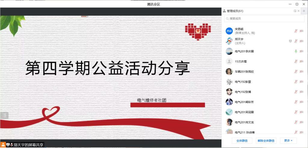 本活动由郑天宇进行主持,其中有宋恩超,李庆霖等同学进行了自己第四学期的分享。其中宋恩超同学说:“自己本次参加的疫情防控志愿者,真切的感受到了疫情就在身边,不是媒体上的数据及报道,对疫情的抗击,应该是我们每一个人的责任。”