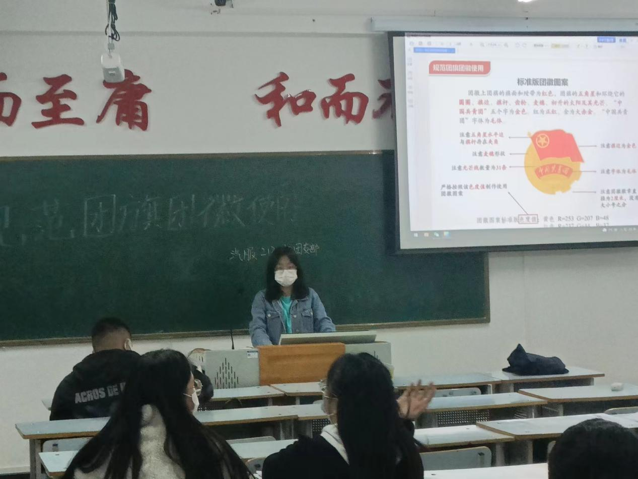 为了加强同学们对团旗团徽的使用与认识,汽服212班团支书牟静文于4月11日在图书馆115开展了“规范团旗团徽使用”主题团会,