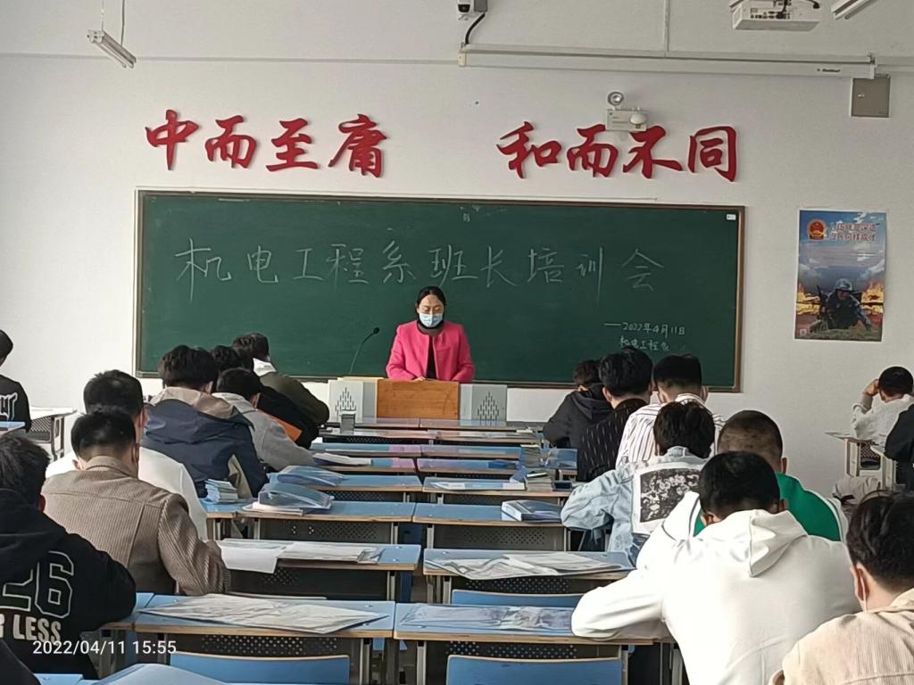 为加强机电工程系各班班长的规范作用,规范机电工程系学生信息卡的填写,4月11日,机电工程系在图书馆710教室召开了系班长培训会。会议由机电工程系党总支书记、学工副主任王丽萍老师主持,机电工程系各班班长参加。