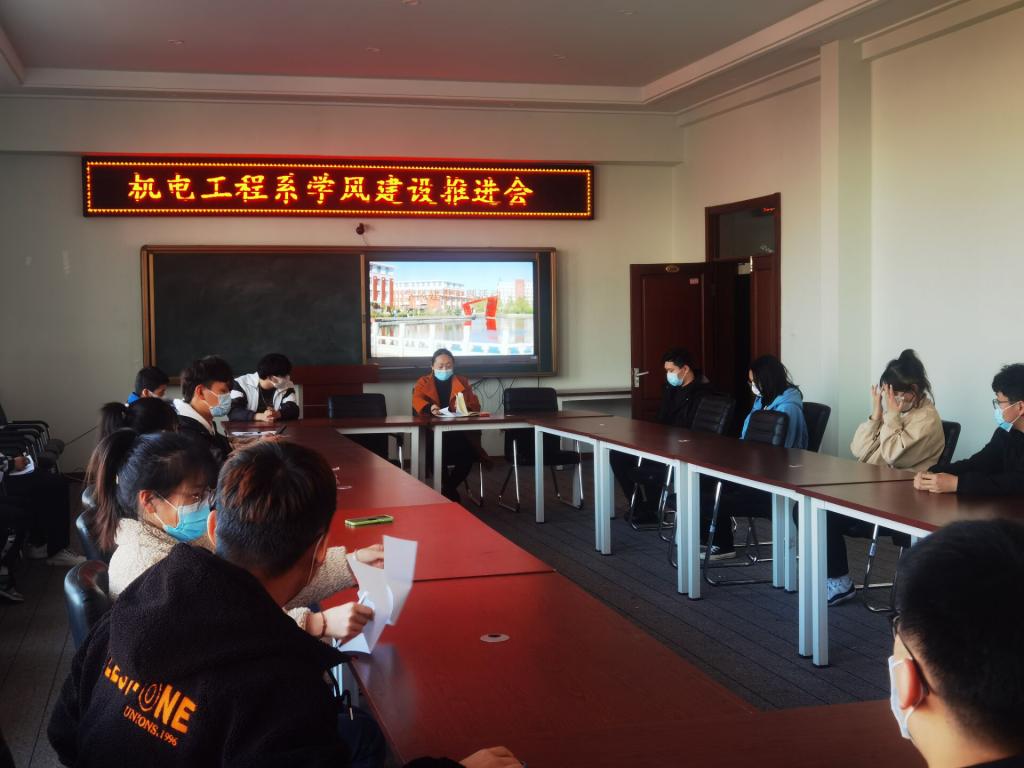 3月29日下午4:50机电系在图书馆608开展“学风建设”主题活动,系党总支书记、学工副主任王丽萍,学生会学生干部以及班级学委参加会议。