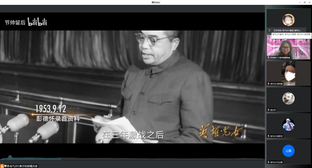 4月12日早10点,电气本201班团支部开展“规范团旗团徽使用”线上主题团日活动,组织委员姜宇同学和团支书黄敬寒同学主持本次活动。