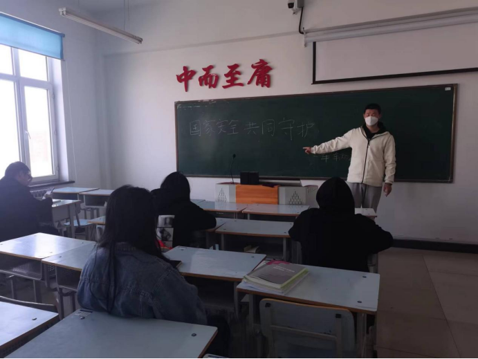 每年的4月15日是全民安全教育日,团支书徐昊同学便从什么是国家安全,为什么建立国家安全,以及如何维护国家安全三方面进行了讲解,活动过程中团支书徐昊同学采用问答的方式带动着同学们的积极性,最后活动也在同学们的积极配合下圆满结束。